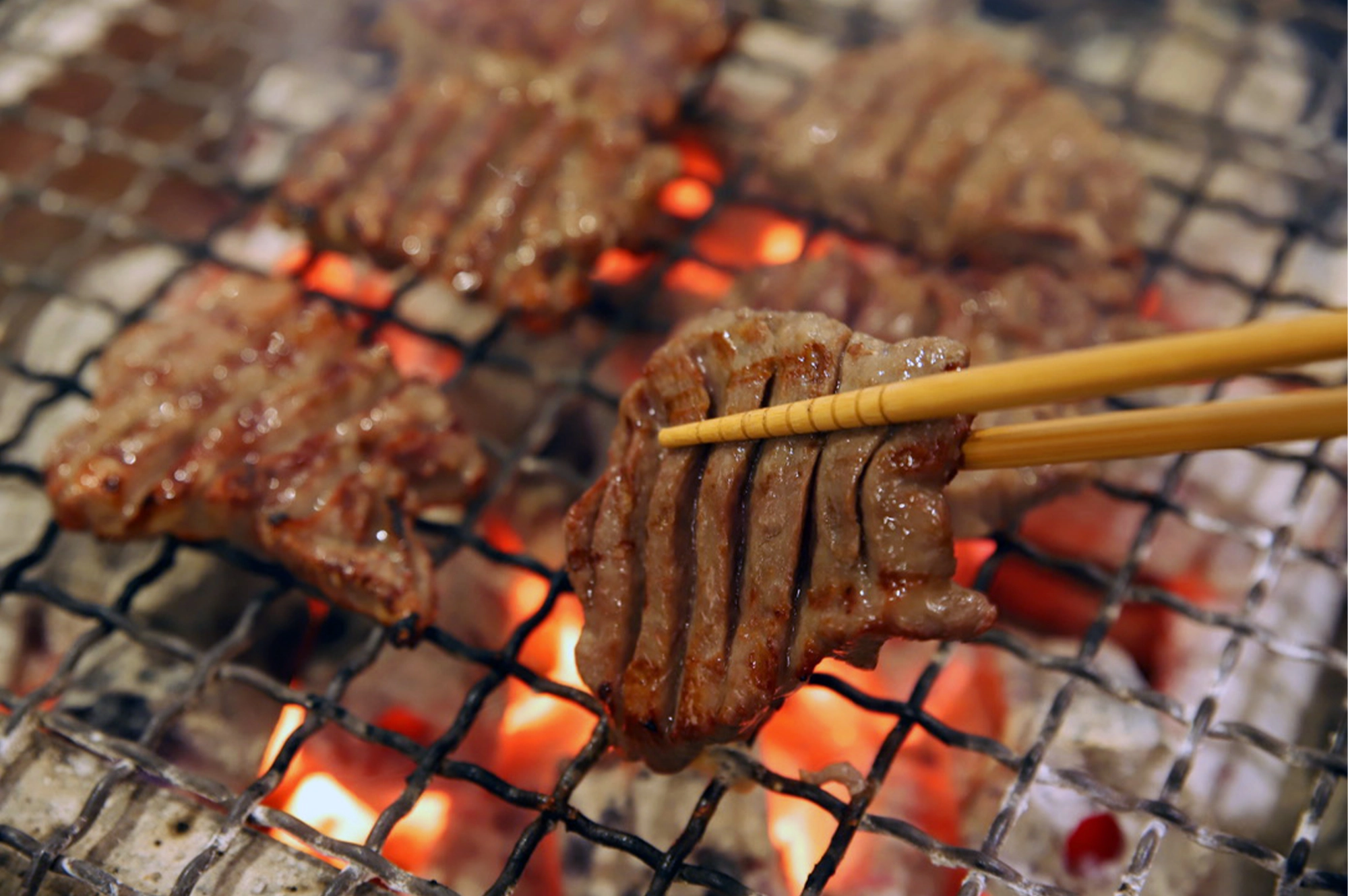 ⾹りの良い「岩手ナラ炭」を使用し、火力が強く黒炭よりも火持ちの良い「オガ炭」を配合。熟練の職人が絶妙な火加減で⼀気に焼き上げる。炭焼き独特の焼き色と⾹ばしい⾹りが特徴で、外はカリッと⾹ばしく、中はふっくらジューシーで最高の牛たんに仕上げます。